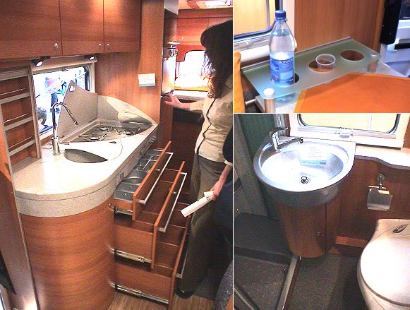 Keine wirkliche Überraschung ist es, dass sich die Damen besonders dem Küchenbereich widmeten. Hier fallen die sehr breiten und praxisgerecht eingeteilten Schubladen auf, aber auch ein pfiffiges und flexibles Klappensystem über Spüle und Herd. Auch im Bad gibt es einige Innovationen wie ein verschiebbares Waschbecken. Der Heckgarage unter dem höhenverstellbaren Doppelbett haben die Wohnmobil-Praktikerinnen ein variables Regalsystem verpasst, und im Wohnbereich gibt es weitere neue Ausstattungsdetails von zahlreichen Staumöglichkeiten bis zu einem beheizten Schuhfach im Doppelboden.